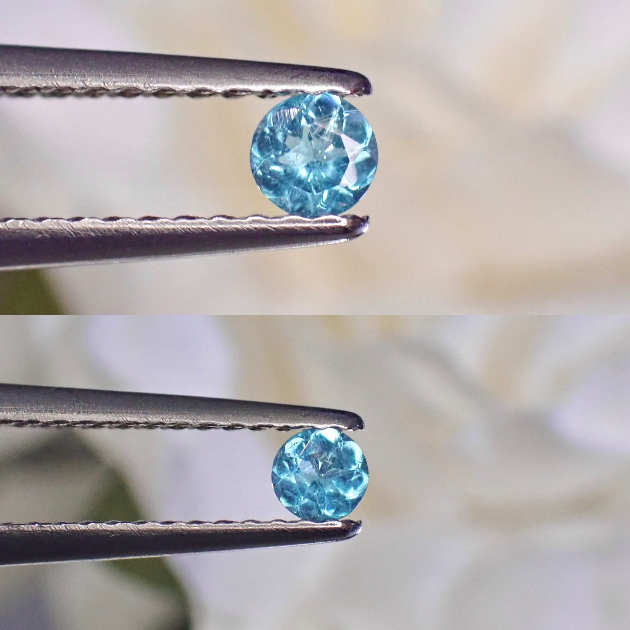 ・パライバトルマリン (0.1ctup 3mm CuO:1.7 MnO:2.5 )、マダガスカル産ロイヤルブルーサファイア 0.5ctup(AIGS鑑別書付)